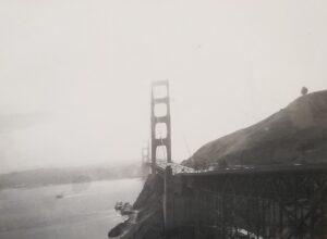 The Golden Gate Bridge on a foggy morning at end of a run, 1984. (Photo by S. Clark)