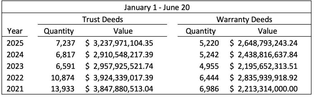 What a hot week it has been! Friday marked the beginning of summer, and it is off to a blazing start so far. Concerning property records though, last week was slightly cooler than the week prior. During the week of June 16-20, a total of 1,308 documents were recorded. This represents 150 fewer recordings than the week prior.