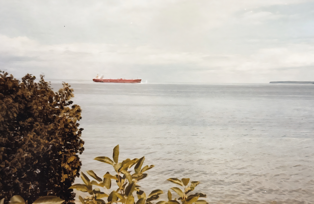 Iron ore ships like this one passing through Death’s Door in Door County, Wisconsin, 1974, are the same type of freighters as the Fitzgerald.