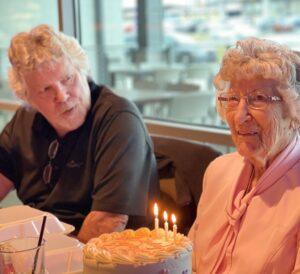 Larry Weaver with his “Aunt Mac” at a previous birthday.