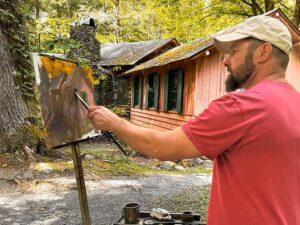 JPG Charles Newman paints at Spence Cabin at Elkmont during Plein Air Smokies 2023