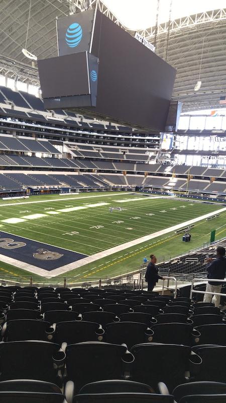 Private suites vary in size from 24 people to 52 people. For single games, the cheapest one starts at $30,000. Most prices are not listed. For more information on renting suites, instructions are to call the Cowboys ticket office. We learned on our tour that AT&T Stadium is the only one that has private suites on the field level. That may or may not be true. We toured a field level box. It shows an interesting perspective for watching a game.