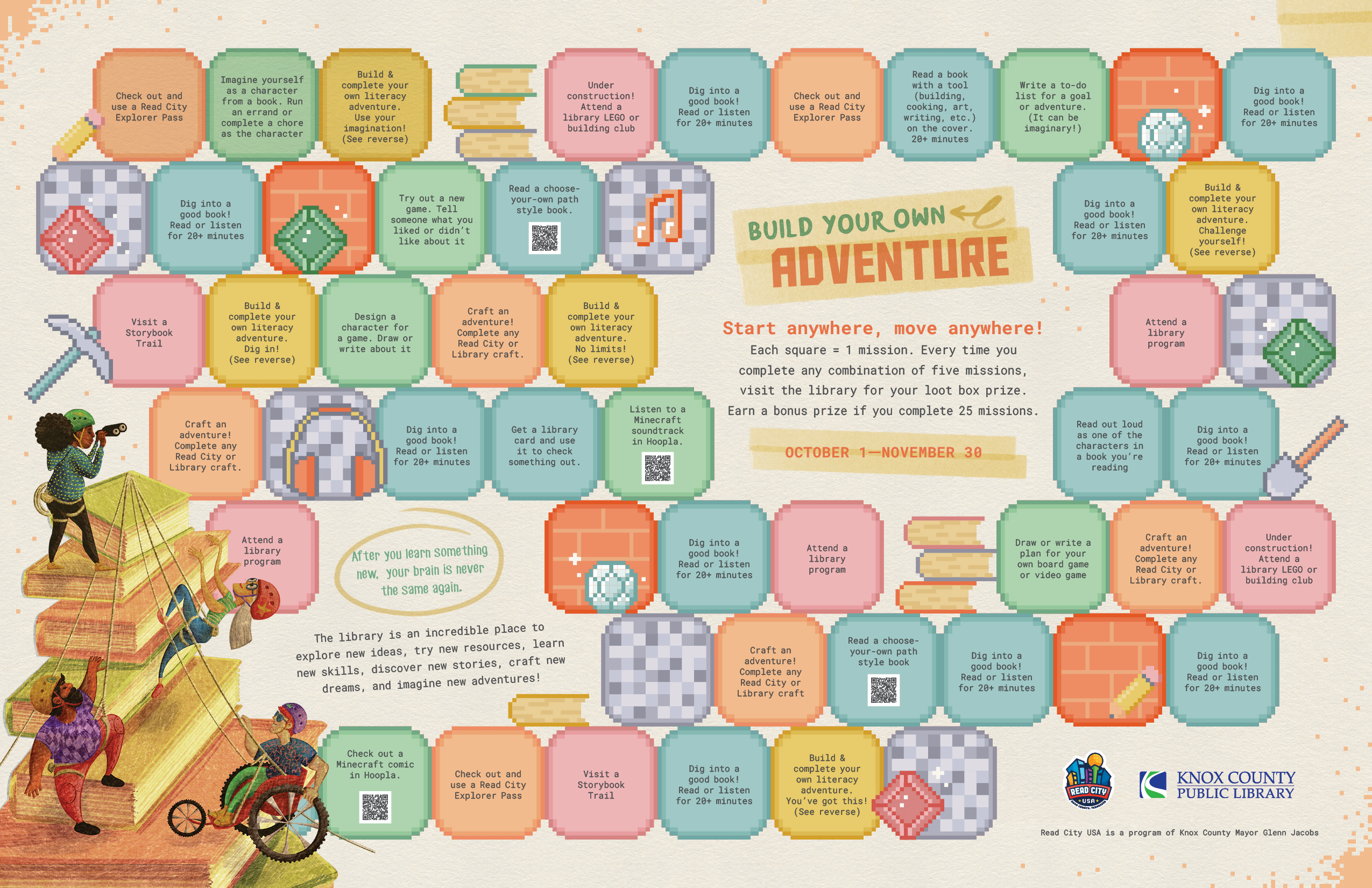 It’s fall break for Knox County Schools and the perfect time to pop into a library to sign up for the final leg of the Read City 2024 challenge. This time around, the theme is “Build Your Own Adventure.” This challenge is about exploring new ideas, trying new resources, learning new skills, discovering new stories, crafting new dreams and imagining new adventures. All it takes is a library card!