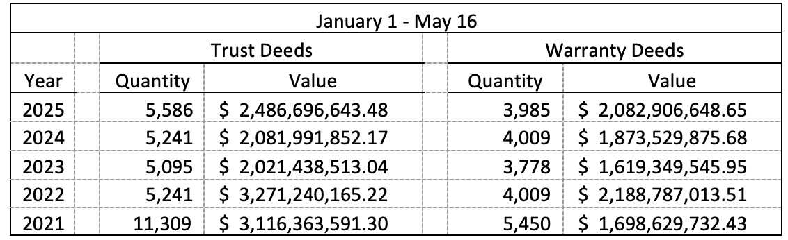 During the work week that ended May 16, 2025, we added 1,395 documents to Knox County’s property records. Included in the total were 318 trust deeds valued at $122.59 million, with seven loans exceeding $1 million. The largest loan was for $11.5 million, funded by United of Omaha Life Insurance Company. Berkadia Commercial Mortgage LLC served as the lender for the second highest amount at $9.11 million. Southeast Bank lent $9.04 million. The others of $1 million or more are: