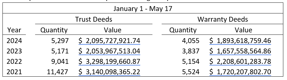 The week ending May 17, 2024, put 1,396 new deeds on the books.