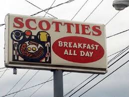 Scotties is open from 6 a.m. to 7 p.m. Monday through Saturday. They serve breakfast all day except for their gravy: ” When it’s gone, it’s gone.” Lunch and Saturday dinner choices include everything from baby burgers and corn dogs to salad.