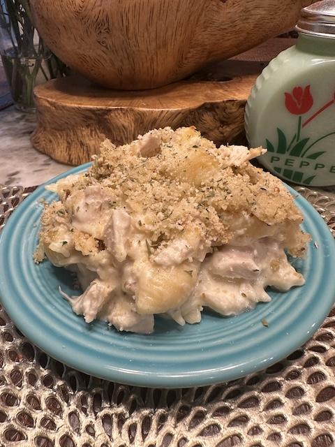 - In a greased casserole dish, layer ½ of the pasta mixture and top with 1 cup of cheese. Sprinkle with Nature’s Seasoning. Add the remaining pasta and top with one cup of cheese. Top with Italian bread crumbs and bake uncovered approximately 40 minutes.