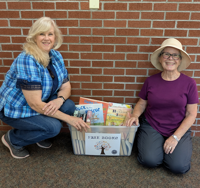 The free bin shows KCPL employee Becky Ault and FOL volunteer Mali Gla