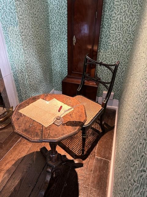In September 2023, I visited Chawton, Hampshire, where Miss Austen spent the last few years of her life, living with her sister, Cassandra. Here at a small writing table, she wrote the stories that still fascinate readers today.