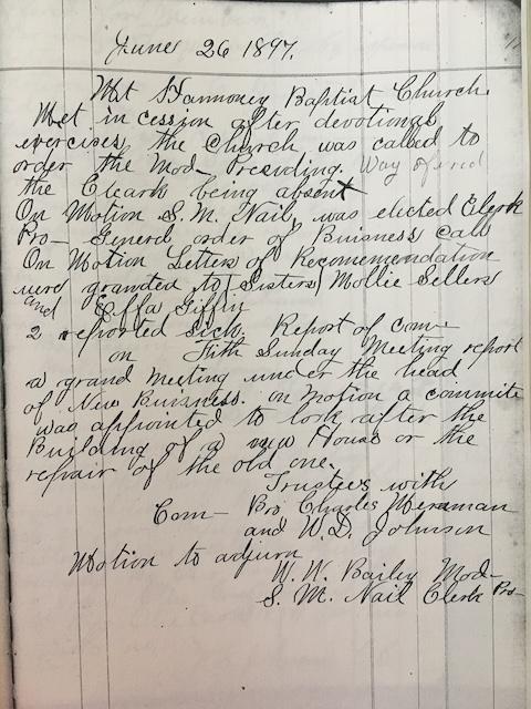 1897 Mt. Harmony Baptist Church note showing Charles Merriman as trustee