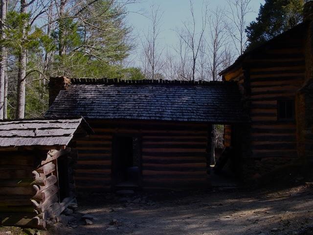 The Elijah Oliver home is located about a half mile off of the Cades Cove loop road, 4.5 miles from the entrance.  The home was built in 1866.  The home consists of two rooms that are connected by a roof.  The second room was used as a kitchen. The second room was lower than the first room, and the space between the two rooms was called a “dog trot”.  Those of us who were around in the 1950s and 1960s would have likely called this space a “breezeway”.  During the summer months, much of the time, there was a comfortable breeze blowing through this space, and the residents would often sit there shelling beans or taking the husks off of corn.