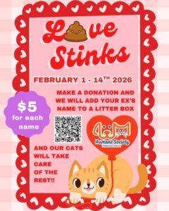 Love Stinks is still going strong, and we are taking names and donations until the end of the day on 2/14!!