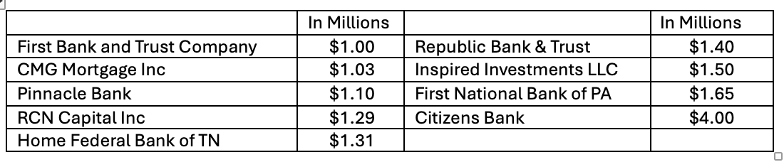 A total of 1,239 documents were recorded during the week ending December 20, 2024. Warranty deeds (sales) accounted for 202, while 268 were trust deeds (loans). The loans had a combined value of $114.67 million. The highest value loan was $88.86 million, funded by Sumitomo Mitsui Banking Corporation. The second largest loan was $17.08 million loaned by Collier’s Mortgage LLC. The others over $1 million were as follows:
