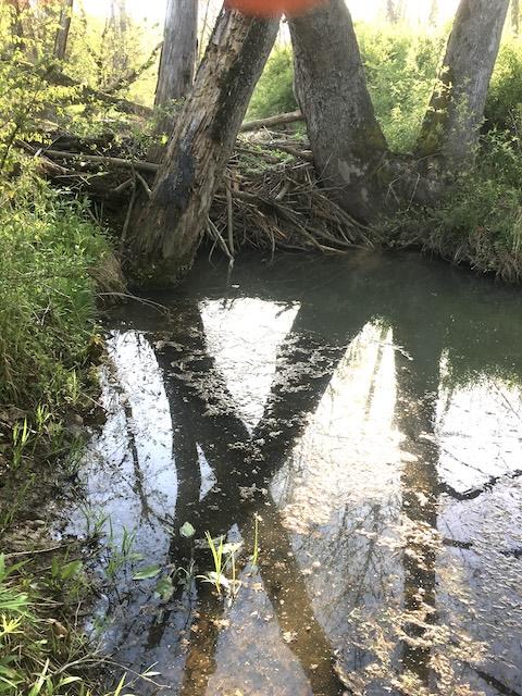 Beaver dam on Swan Pond Creek, creating a pond and wetlands still today