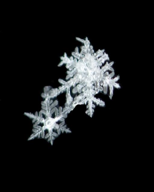 “The plain flat plates develop in the clouds when the temperature is just below freezing. As the temperatures drop the flakes become highly detailed sector plates, these can have amazing designs, they are my favorite! When the cloud temperatures dip into the low 20s or teens, the more “typical” spiky dendrite crystals form. Sometimes they will pick up tiny cloud droplets as they fall, then they become the little snowballs called graupel.”