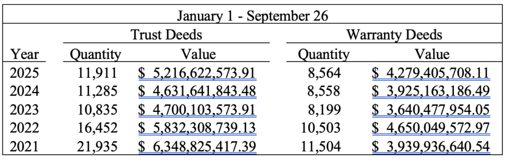 During the week of October 20-24, 2025, a total of 1,294 documents were added to the Knox County property records. New loans recorded on trust deeds accounted for 335 transactions valued at $163.36 million. Nine of those exceeded $1 million. First Bank and Trust Company funded the largest loan of $32.64 million. Walker and Dunlop LLC backed the second-largest amount, $29.25 million. The other high-value mortgages are outlined below: