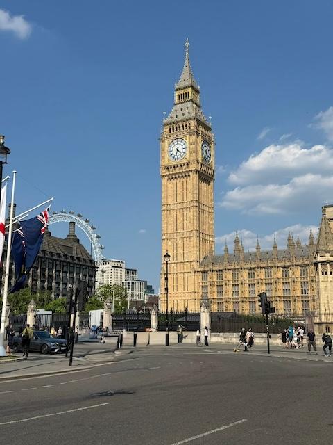 Cameron, Maddie and Michael in front of Westminster Abbey