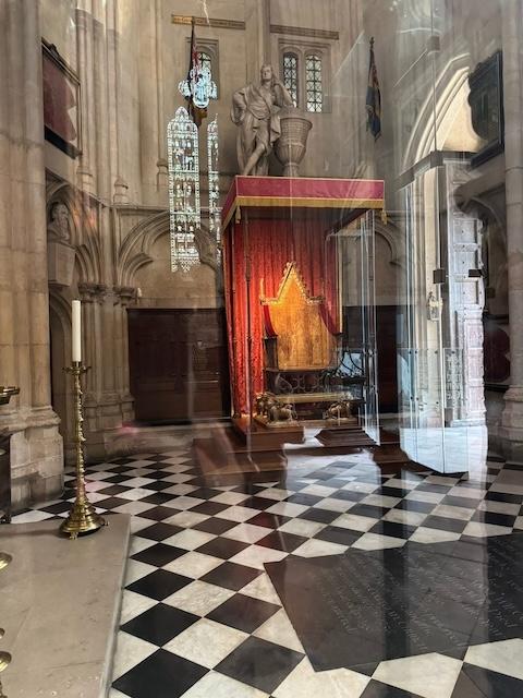 The Coronation Chair, also known as St. Edward’s Chair, is located in Westminster Abbey, a symbol of royal tradition.