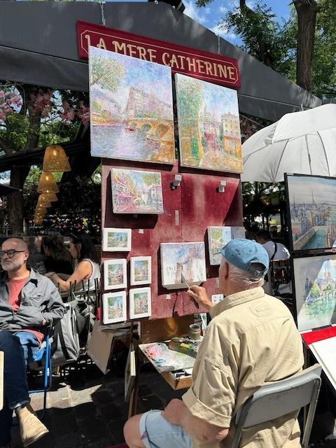 There were several artists doing portraits in Montmartre village. Angela comments, “They were so good.”
