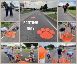 Emory Road around Powell High School is covered with bright orange pawprints. It’s the work of Laura Bailey and friends young and old who gathered with spray paint and screens to welcome football season to PHS.