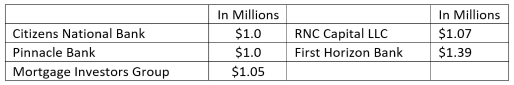 Loans for the week had a total of $101.5 million. The largest loan was funded by EMK investors for $32.29 million. Five other lenders hit the million dollar and over mark: