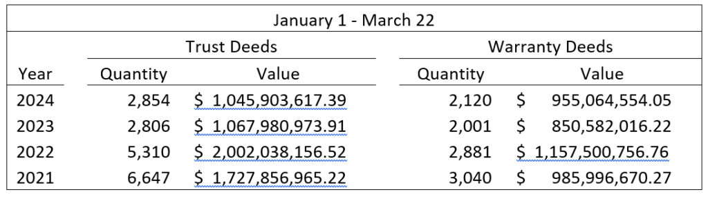 During the third week of March, a total of 1,338 documents were recorded: including 218 property transfers and 280 loans.