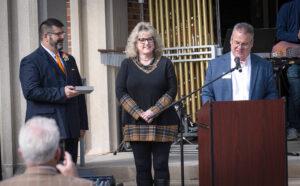 Mary McDonald is joined by C-N President Charles A. Fowler (left) and Music Department Chair Dr. Chris Headley during the university’s Homecoming Music Sampler on Oct. 25, 2025. (Photos courtesy of Carson-Newman University)