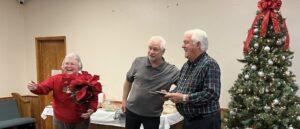 Brent Howell (center) presents gifts to Nancy and Don Gordon