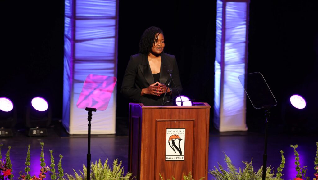 Sylvia Fowles delivers her induction speech. (WNBA)