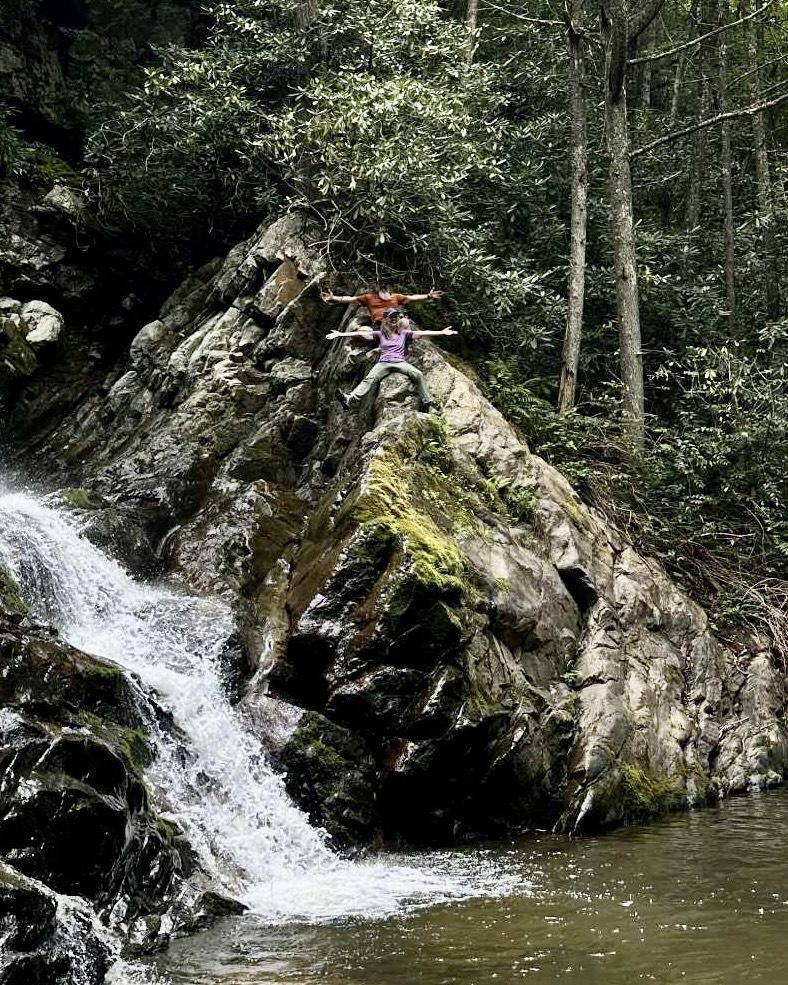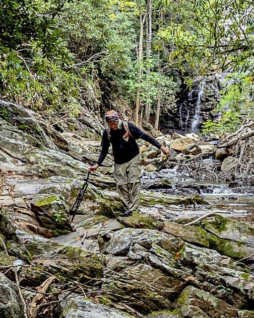 Joe determined that we four needed a get together and convened a #rolemodelreunion at his luxurious Banner Elk (NC) Glamping resort this past weekend. Saturday was the big day, consisting of a hike/ bushwack/ creekwack scramble to an unnamed East Tennessee waterfall known colloquially as the Appalachian Queen, followed by a patio steak dinner by firelight, prepared with care by Joe’s gracious and lovely wife, Marianella. Rock Sprite and I enjoyed our stay in the elegantly appointed Covered Wagon.
