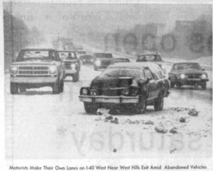 How bad was it? Reports of over 150 car wrecks overwhelmed the Knoxville Police Department to the point they just gave up trying to record traffic information. Ditto Knox County Sheriff’s Office.