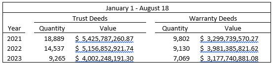 208 properties were sold which had a total value of $96.09 million. Commercial properties made up five of the nine properties with prices over one million dollars.