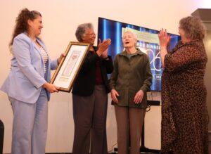 Mayor Indya Kincannon (at left) presents the Diana Conn Good Neighbor of the Year award to Sylvia McLaurin (third from left) (Photo from city of Knoxville)
