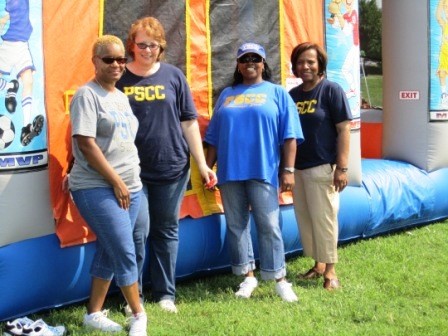 Pellissippi State provided and staffed this big inflatable for the Shoes for School event at Caswell Park. From left: Cynthia Dirl, Patti Rogers, Benita Turner and Rosalyn Tillman.