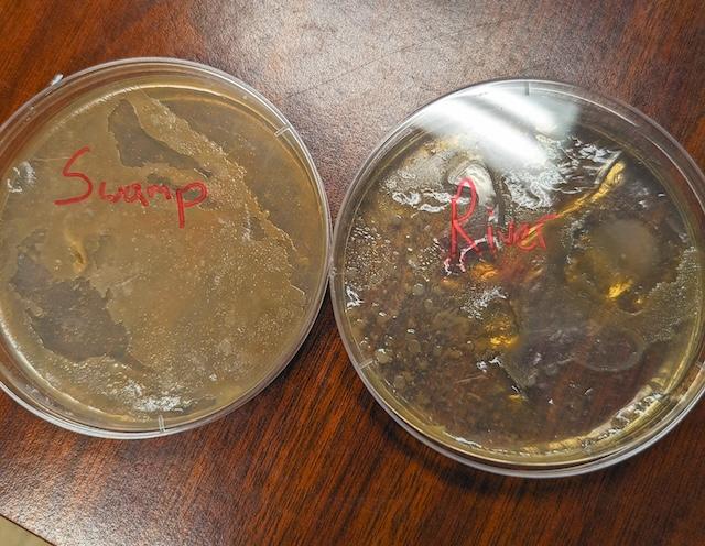 After taking the samples back, the group set up microscopes, prepared slides and used methylene blue stain to identify the microscopic life within the samples.
