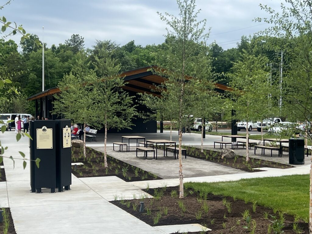 The new Veterans Memorial Park has a pavilion for gatherings and great landscaping.