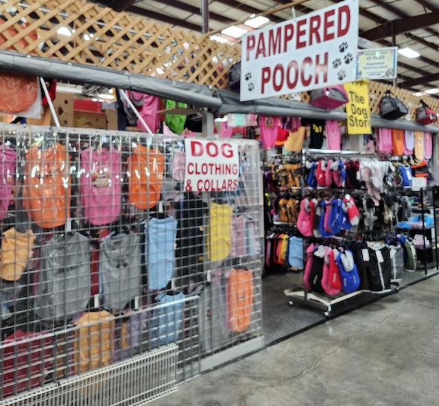 Several dog gear booths like The Pampered Pooch sell clothes, carriers, leashes and more.