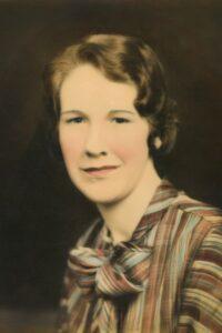 Myrtle Coker was born on a farm in Louisville, Tennessee, on Sept. 13, 1915, one of seven children and the eldest daughter of Erby and Ethel Coker (no known relation to Bryan Coker). She graduated from Everett High School in 1932 and enrolled at Maryville College that fall — along with brother Walter Coker ’36 — to study elementary education. The Coker siblings commuted to campus, and when she wasn’t in class, she was involved in women’s athletics and earned money as a seamstress in the College Maid Shop, a student help program that sewed uniforms, choir robes and dresses that were sold in national department stores. Through it, she perfected a skill of sewing that benefited her family throughout her life.