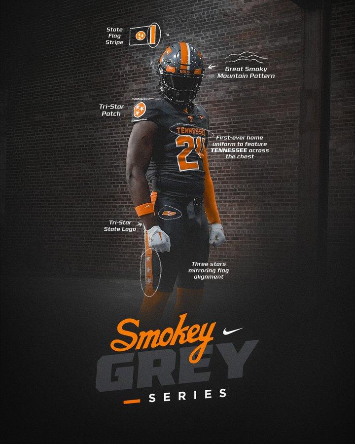 Player attire will include the newest alternate greys with Tennessee across the jerseys. That is good. It will help people figure out which team is inside. Before the marketing department (money) gained absolute control, school colors were orange and white.